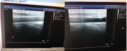 既往由于彩超的噪音干扰,血管管腔内极易出现透声差,甚至假阳性,我院西门子Antares彩超具有血管增强技术,又称数字减影技术(VET技术),启用VET技术后,可清晰显示患者颈动脉血管腔及管壁结构,尤其对早期血管内中膜IMT轻度增厚患者,能精确测量IMT;对已有斑块形成者,可清晰显示斑块表面特征及内部回声结构。