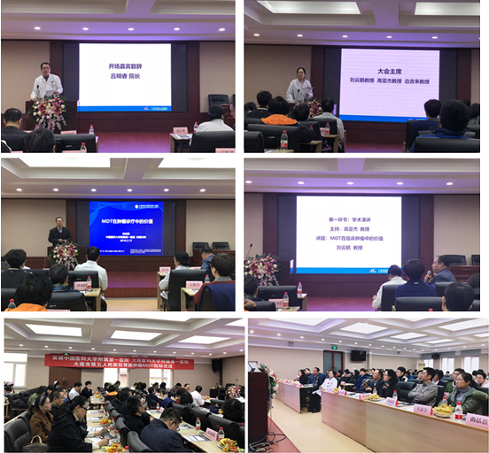 会议由大连市第五人民医院及大连医科大学附属第一医院的肿瘤科专家边吉来和高亚杰主持,市五院教学副院长首先向大会致了开幕词,表达了对与会人员的感激及对 “胃肠肿瘤多学科联合治疗”的信心与期盼,其后会议进入正式的学术交流及研讨环节。中国医科大学附属医院的刘云鹏教授、曲晶磊教授率先发言,他们分别通过总结既往经验、回顾经典案例的方式向与会人员展示了多学科联合治疗在肿瘤治疗过程中所发挥的重要作用和已经取得的良好效果,以此表明“MDT作为指南和诊疗规范推荐的标准诊疗模式代表了肿瘤规范化治疗的趋势和未来,适时地应用该诊疗方式可为患者制定全方位个体化的诊疗意见,获得最佳的生存获益”。