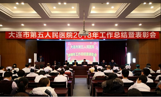 2019年1月25日下午,市五院在沙河口区委党校报告厅组织召开了 “2018年工作总结暨表彰会”,院领导班子、中层干部、护士长、负责人、年度先进工作人员及部分职工200余人参加了会议,副院长李明武主持了会议。